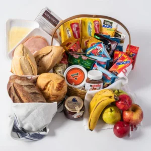 17 Itens da Bauducco sendo( Suco, Achocolatado, Chá, Cappuccino, Açúcar, Adoçante, Bolacha Doce, Torradas Salgadas, Mini Margarina e Geleia etc…)