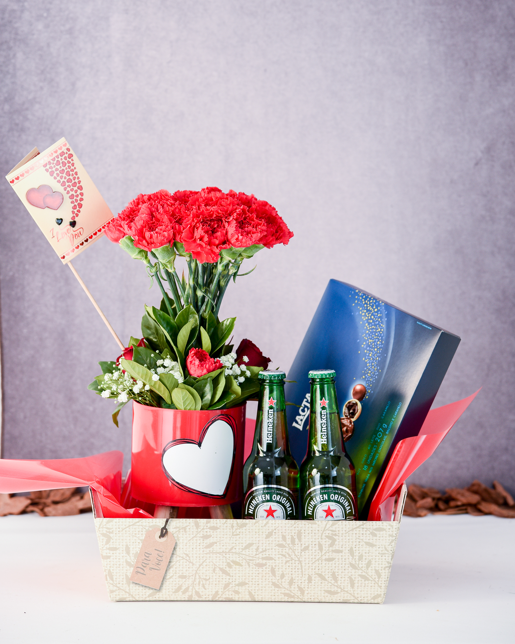 Celebre os bons momentos com a Cesta Brinde de Alegria, uma combinação perfeita de sabor e beleza. Essa cesta contém duas cervejas Heineken, ideais para brindar com estilo, acompanhadas por um arranjo vibrante de gérberas frescas, que trazem um toque de cor e alegria. Para adoçar a experiência, inclui uma deliciosa caixa de chocolates Lacta e um belo cartão personalizado para transmitir suas palavras de carinho. Um presente completo e marcante, perfeito para comemorar qualquer ocasião especial!